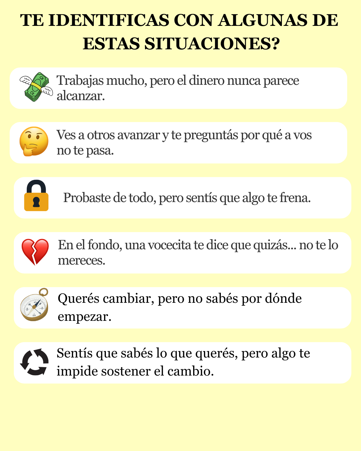 No solo abundancia económica. Se trabaja la abundancia emocional, mental y personal, entendiendo que todo cambio externo empieza por el mundo interno.